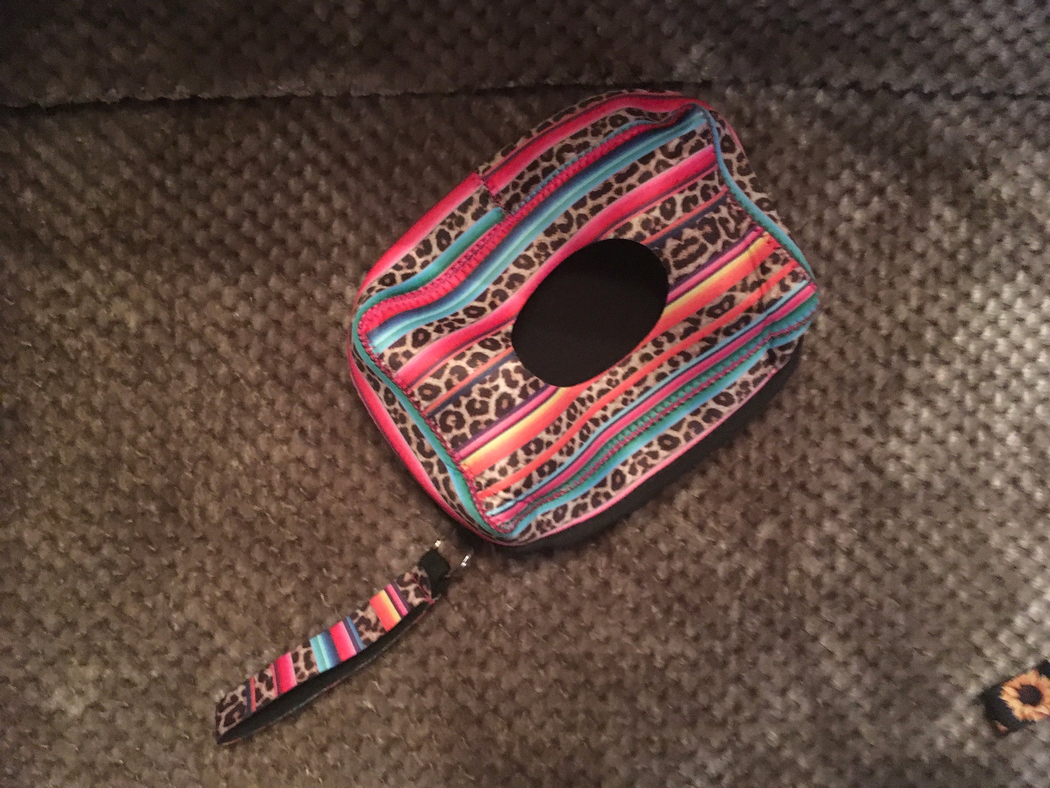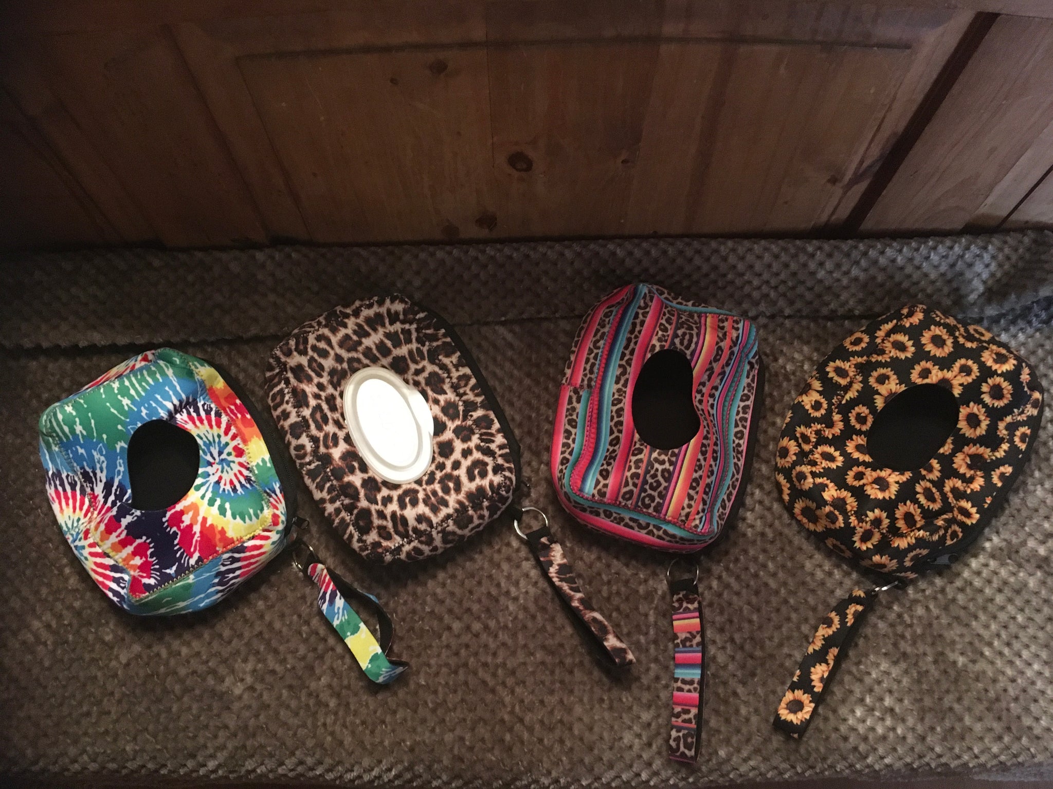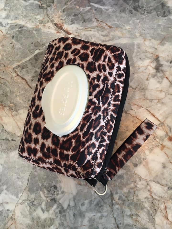 These adorable wipey holders will work with all brands. Made from neoprene and has a wristlet.